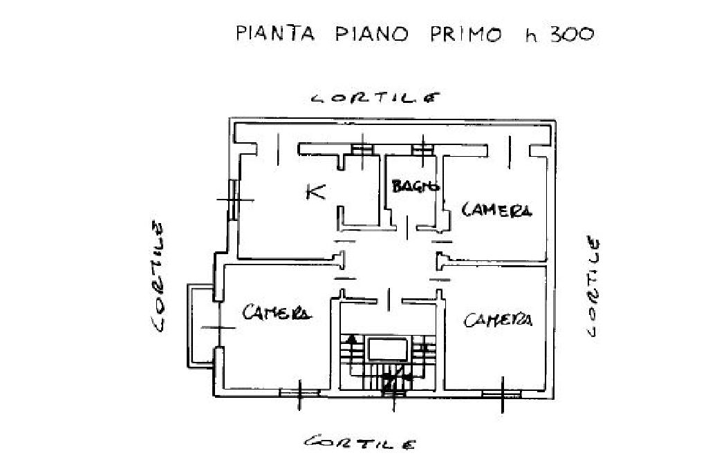 Al primo piano l'alloggio è stato completamente ristrutturato ed è suddiviso in un'ampia zona giorno, volendo facilmente separabile in cucina e soggiorno, una camera camtrimoniale, un'ulteriore camera con cabina armadi e due bagni, il primo di servizio con gli attacchi della lavatrice, il secondo di ampia metratura con box doccia. Questo piano è stato completamente ristrutturato, sia per quanto riguarda gli infissi in pvc con doppio vetro sia gli impianti ed i rivestimenti. Inoltre sono presenti le zanzariere.